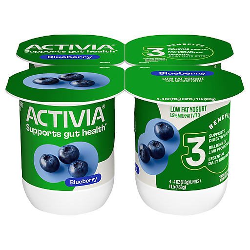 Activia Probiotic Blueberry Low Fat Yogurt Cups are loaded with delicious flavor and creamy texture. Backed by 20 years of gut health research and innovation, this refreshingly smooth blueberry yogurt contains billions of probiotics, five live cultures and essential nutrients.** Grab an Activia yogurt for part of an easy and delicious breakfast, mix it into a yogurt smoothie, or enjoy one in the afternoon as an on the go snack. *Enjoying Activia twice a day for two weeks as part of a balanced diet and healthy lifestyle may help reduce the frequency of minor digestive discomfort, which includes gas, bloating, rumbling, and abdominal discomfort.