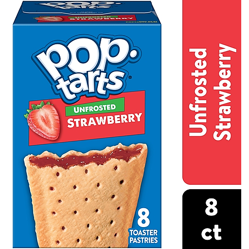 Pop-Tarts toaster pastries are the perfect sweet treat at breakfast, for lunch snack time, or dessert. Featuring a sweet strawberry-flavored filling in a soft pastry crust, this ready to eat treat is perfect for snack time for kids and adults on the go. Pack Pop-Tarts Unfrosted Strawberry in lunchboxes or backpacks when it's time for school snacking, or stock the office pantry with this individually wrapped grab and go adult snack time choice. Pop them in the toaster and pair with milk, create your own ice cream sandwiches, or incorporate into your favorite dessert recipe for a sweet treat. These irresistible snack time options for kids and adults provide a good source of three B vitamins. Stock your pantry with these shelf stable snack alternatives and enjoy ready to eat treats anytime. A flavor for everyone, including beloved classics like Frosted Strawberry or Frosted Cherry, or our more indulgent flavors, Frosted Cookies and Creme or Frosted Chocolate Fudge.