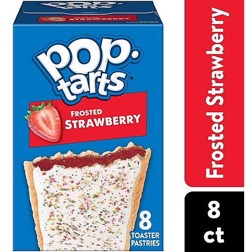 Pop-Tarts toaster pastries are the perfect sweet treat at breakfast, for lunch snack time, or dessert. Featuring a sweet strawberry-flavored filling and crunchy sprinkles on a soft pastry crust, this ready to eat treat is perfect for snack time for kids and adults on the go. Pack Pop-Tarts Frosted Strawberry in lunchboxes or backpacks when it's time for school snacking, or stock the office pantry with this individually wrapped grab and go adult snack time choice. Pop them in the toaster and pair with milk, create your own ice cream sandwiches, or incorporate into your favorite dessert recipe for a sweet treat. These irresistible snack time options for kids and adults provide a good source of three B vitamins. Stock your pantry with these shelf stable snack alternatives and enjoy ready to eat treats anytime. A flavor for everyone, including beloved classics like Frosted Blueberry or Frosted Cherry, or our more indulgent flavors, Frosted Cookies and Creme or Frosted Chocolate Fudge.