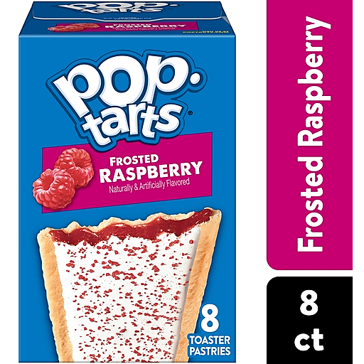 Pop-Tarts toaster pastries are the perfect sweet treat at breakfast, for lunch snack time, or dessert. Featuring a sweet raspberry-flavored filling and crunchy sprinkles on a soft pastry crust, this ready to eat treat is perfect for snack time for kids and adults on the go. Pack Pop-Tarts Frosted Raspberry in lunchboxes or backpacks when it's time for school snacking, or stock the office pantry with this individually wrapped grab and go adult snack time choice. Pop them in the toaster and pair with milk, create your own ice cream sandwiches, or incorporate into your favorite dessert recipe for a sweet treat. These irresistible snack time options for kids and adults provide a good source of three B vitamins. Stock your pantry with these shelf stable snack alternatives and enjoy ready to eat treats anytime. A flavor for everyone, including beloved classics like Frosted Strawberry or Frosted Cherry, or our more indulgent flavors, Frosted Cookies and Creme or Frosted Chocolate Fudge.
